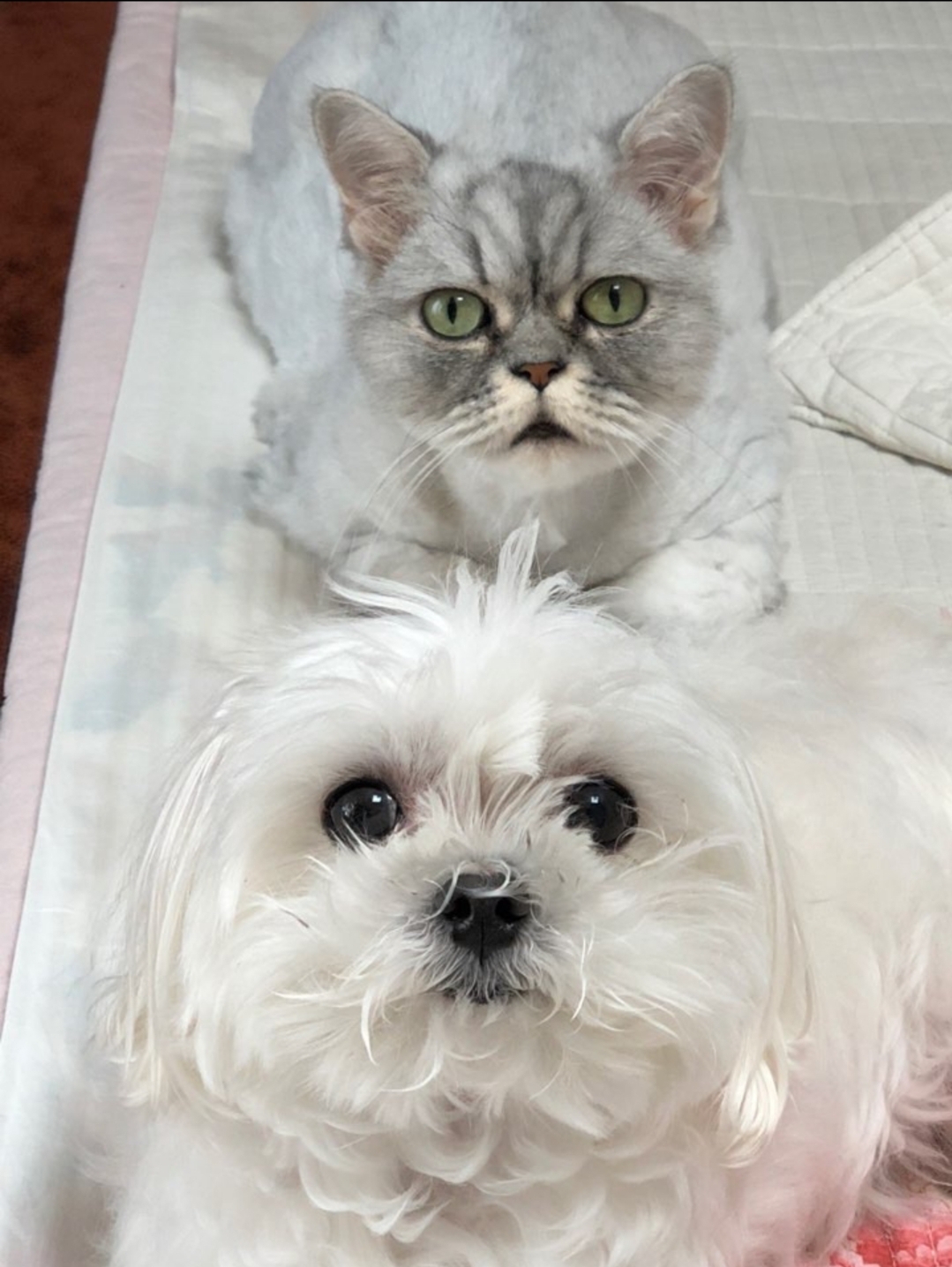 몰티즈인 잔디는 딸아이가 중학생일 때 울산 집으로 왔다. 그로부터 3년 뒤, 내가 서울에서 직장 생활을 하던 시절 완두(페르시안 친칠라)를 만났다. 퇴근길 오피스텔 1층 동물병원 케이지 안에는 늘 같은 고양이가 있었다. 2주 내내 입양이 안 되고 홀로 자리를 지키던 그 아이가 자꾸 눈에 밟혔다. "이번 주말에 집에 다녀왔을 때도 그대로 있으면, 내가 데려간다."라는 생각을 갖고 주말에 집에 다녀왔다. 일요일 저녁, 서울 집으로 돌아오니 녀석은 여전히 그곳에 있었다. 나는 망설임 없이 완두를 가족으로 맞이했다.